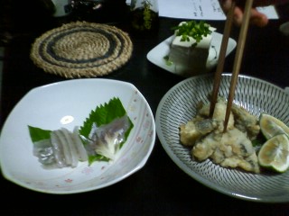 11連休最終日。 午前中はテレビを見てゴロゴロ。 昼過ぎに車に乗り釣具屋へ。 300円分の虫餌を買い、向かったのは中海。 おもちゃのような釣竿でポイッと投げ込み糸を張りながら待つと、ピクリピクリと当たり。 リールを巻くと10cmほどのハゼです。 その後、1時間半ほどでハゼ15匹、セイゴ1匹の釣果。 帰って刺身と天ぷらにしました~。 美味しく食べて満足! さて、明日から久しぶりの仕事です~。