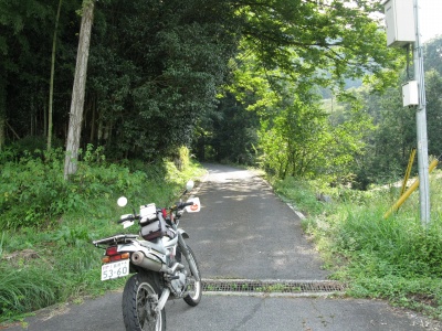 この前の11連休。 ダラダラと過ごして終わってしまいました。 で、その連休中の日帰りツーリング。 SL230を買った4年前に走った林道を久しぶりに目指しました。 当時は、砂利がちょっと深いな~という印象でした。 現在は雲南市、旧木次町と旧吉田村の境あたりにある林道 深野菅谷線です。 最初はアスファルト舗装。 が、舗装が切れダートになるとすぐにガレガレ。水の流れでえぐられて50CMほどの深さは当たり前(泣) そのうち、道?は教習所の1本橋の上に石が置いてあるような感じになったり、草で隠れた石に乗り上げたり…。 少し道が落ち着いて停まれたのがここ。 落ち着いたといっても道は草に覆われ、隣にはえぐられた大穴。各所に草に隠されたように大きな石が落ちてます。 なにやら施設が。 吉田地震観測所と書いてあります。 観測データは遠隔で見れるんだろうな。 さて、あとどれくらいだ?半分くらいは来ただろうか? これまで上り坂だったのですが、引き返すのが怖い。 ハンドルを押さえる手がプルプルしてきてます。 さて、先へ。 これまで同様、ガレガレの道をしばらく進むとようやく落ち着いてきました。 落ち着いたといっても、北海道の林道のようなフラットではありませんが。 快適に走行中、カーブを曲がったら…。 土砂が流れたようで道が塞がってます。 土が乾いていたのでオンロードタイヤでも越えることができました~(ここで引き返すなんて!)。 ようやく終点。 距離は5キロもないのですが、かなり長く感じた林道でした。