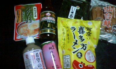 今日は、出雲大社へ行ってきました~。 平成の大遷宮で賑わっている出雲大社。 奉祝行事としてさまざまな催しがあるようですが、今日は島根県美郷町の千原神楽。 「八岐大蛇」をやってました。 初めて見たけど、動きに迫力があってなかなかよかった! でも、会場が広すぎて、声を聞きとりにくかったのが残念…。 他には、宮城から女川の法印神楽ってのも来てました。 島根物産の近くで、東北の物産展もやっていて、いろいろ買っちゃいました♪ ちょくちょくこれらの食材を夕食に使いたいと思います♪