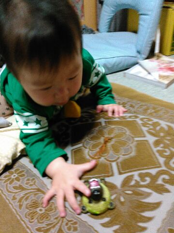 朝晩冷えてきましたね。 冬ももうすぐそこって感じです。 さて、先日の東京出張から帰り、蔵と家の往復の毎日です。 家に帰ってホッとするのも束の間、好奇心の塊のような男が暴れています…。 今日は、ゆるキャラなのに人を襲うことで有名なあの「夕張メロン熊」に襲い掛かってました。 すき間風の多い家なので冷えに気をつけながら、しっかり遊んでもらいます~。