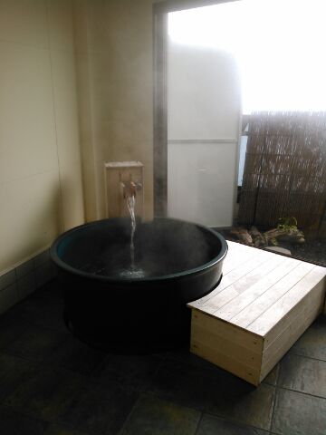 久しぶりの1日休みだった昨日、粒男を連れて温泉に行ってきました。 粒男は温泉デビューです。 普段、家のお風呂に入っていると、「シーシー(おしっこ)した!」と言ってニコニコする粒男。 「そうか~」と言ってシーシーが混ざったお湯に浸かる幾三、そのお湯をゴクゴク飲む粒男…ってな場面が多く、まだ大浴場には入れないので家族風呂を探すことに。 で、向かったのはみなと温泉ほのかみというところの家族風呂。 以前は大浴場だけだった境港の温泉施設です。 塩化物泉で温まるお湯ですが、リニューアルしたという話を聞いて行ってみました。 1800円で45分利用できます。 家族風呂は毎回お湯を入れ替えるのでかけ流し。もし粒男がシーシーをしても、お湯をゴクゴク飲んでもちょっとしょっぱいだけで大丈夫でしょう。 陶器の湯船にお湯が張り込まれています。 普段と違うお風呂に警戒気味の粒男でしたが、入ってしまうとなかなか楽しい様子。 家のバケツのような狭い風呂とは違い、足が伸ばせて幾三もリラックス。 ニコニコしながら水面を叩いて、水しぶきで頭からずぶ濡れになっていた粒男でした。 塩の効いた湯はやはり温まるようで、風呂から出てもしばらくは汗がひきませんでした。 天気の悪い冬の山陰、酒造期の休日の定番風呂になりそうです。