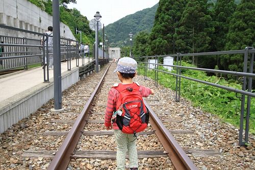 かつての線路を歩くことができます。粒男は線路を歩けるだけで大興奮です。