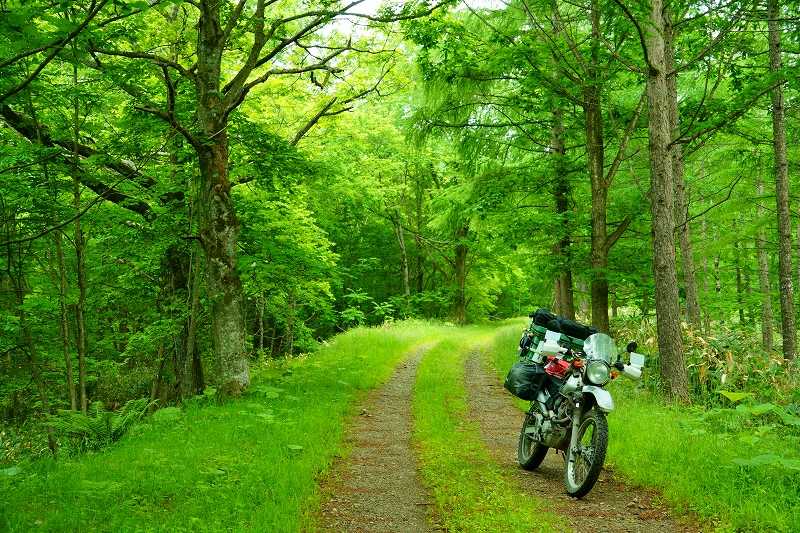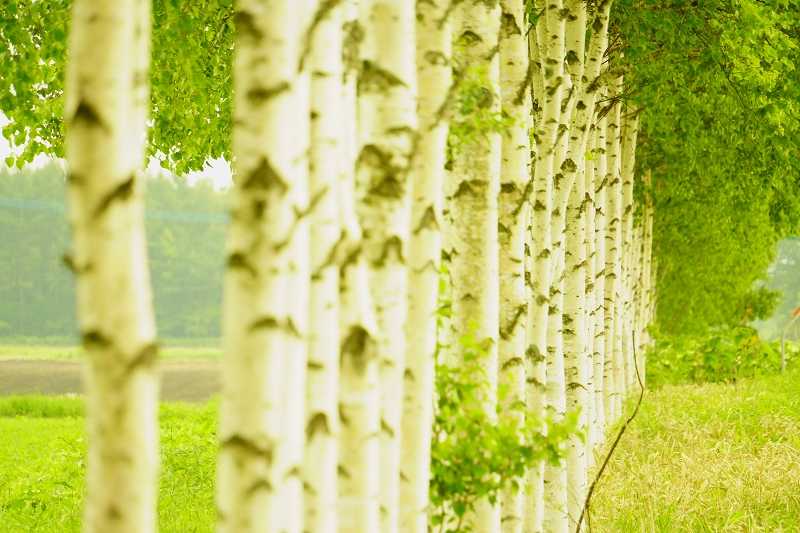 国道を避けてのんびり走ってると、綺麗に一列に並んだ白樺が。