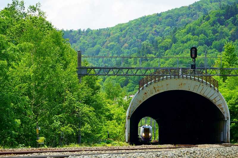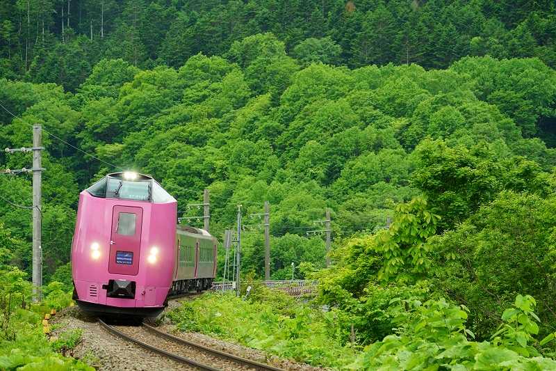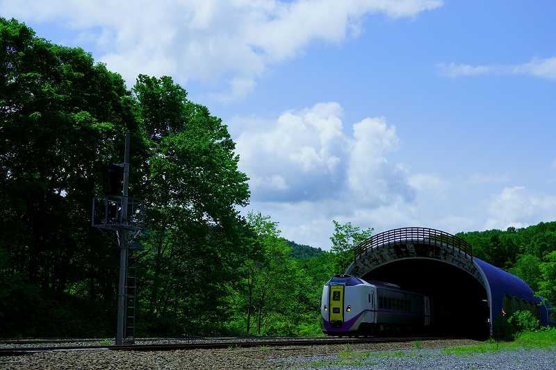 東占冠信号場近くの跨線橋から白い特急を1枚。