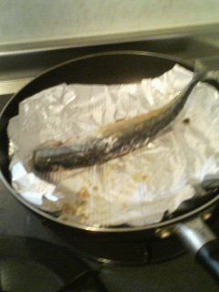 東京から山形、大阪、三重と新幹線・飛行機・新幹線と3日間で移動してきました。出張の合間に自宅にも戻ってなかなか忙しい日を送っていました。 ノートパソコンを持って出張に行ったので、ホテルで仕事を進めて、今日は、ゆっくり休もうと思っていたのですが・・・なんとパソコンの電源コードを忘れ、充電もゼロの状態となっており、パソコンは無用の長物、ただ重いだけの荷物になってしまった為、今日は朝から仕事をしてました。 仕事が終了した後、晩御飯の買物をしていると「さんまが98円」で販売していた為、思わず衝動買いをしてしまいました。 今住んでいる家には、コンロに魚焼き機がないので、クッキングアルミ 198円をさんまと共に購入して、フライパンで焼いてみました。 さんまは、はらわたを取って、フライパンにのるサイズにする為、頭を落としてました。付け合せには、ポテトサラダも作ってみました。なかなかおいしい晩御飯ができました。