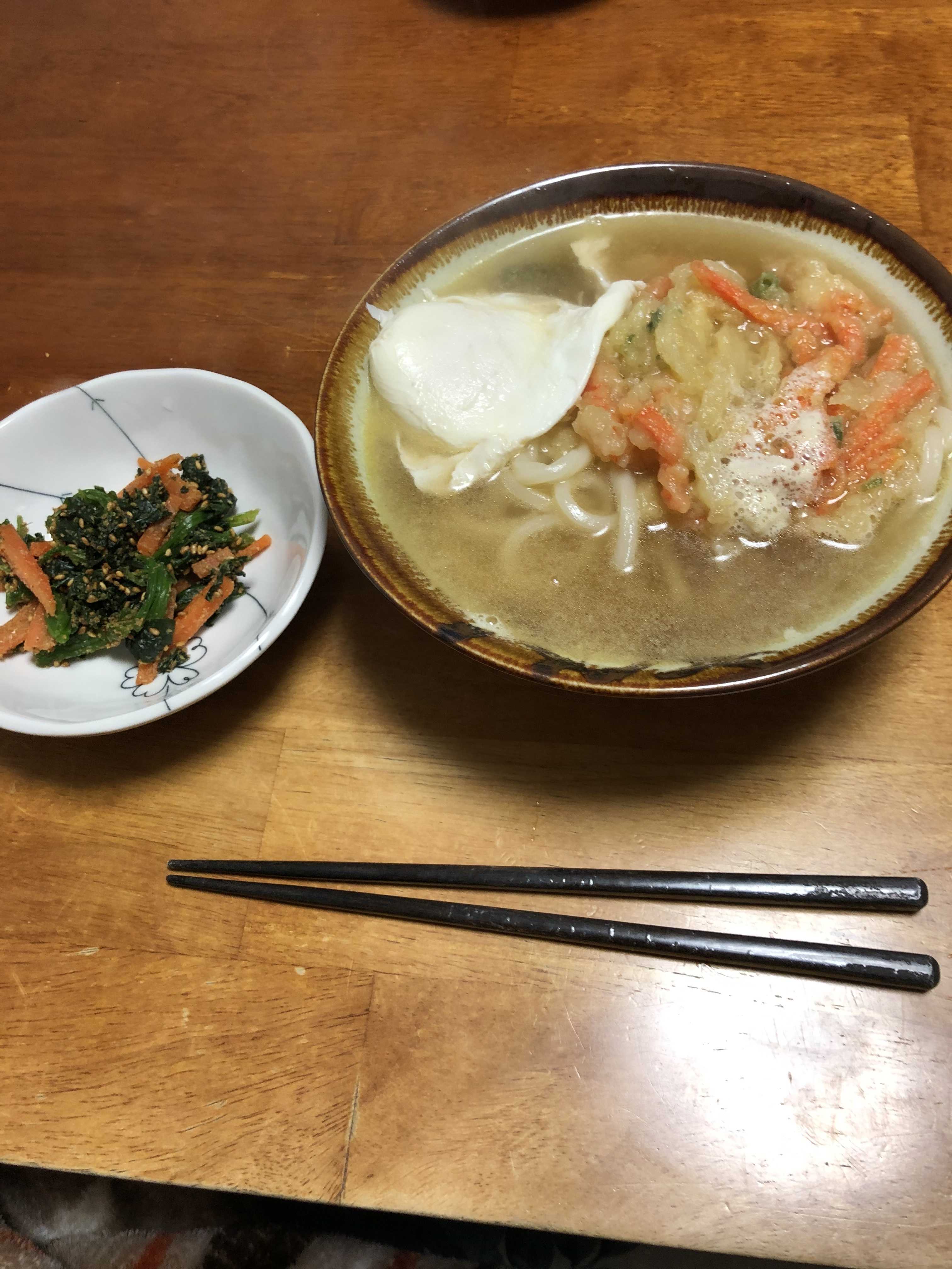 冷凍うどんとかき揚げでかき揚げうどんにしました。