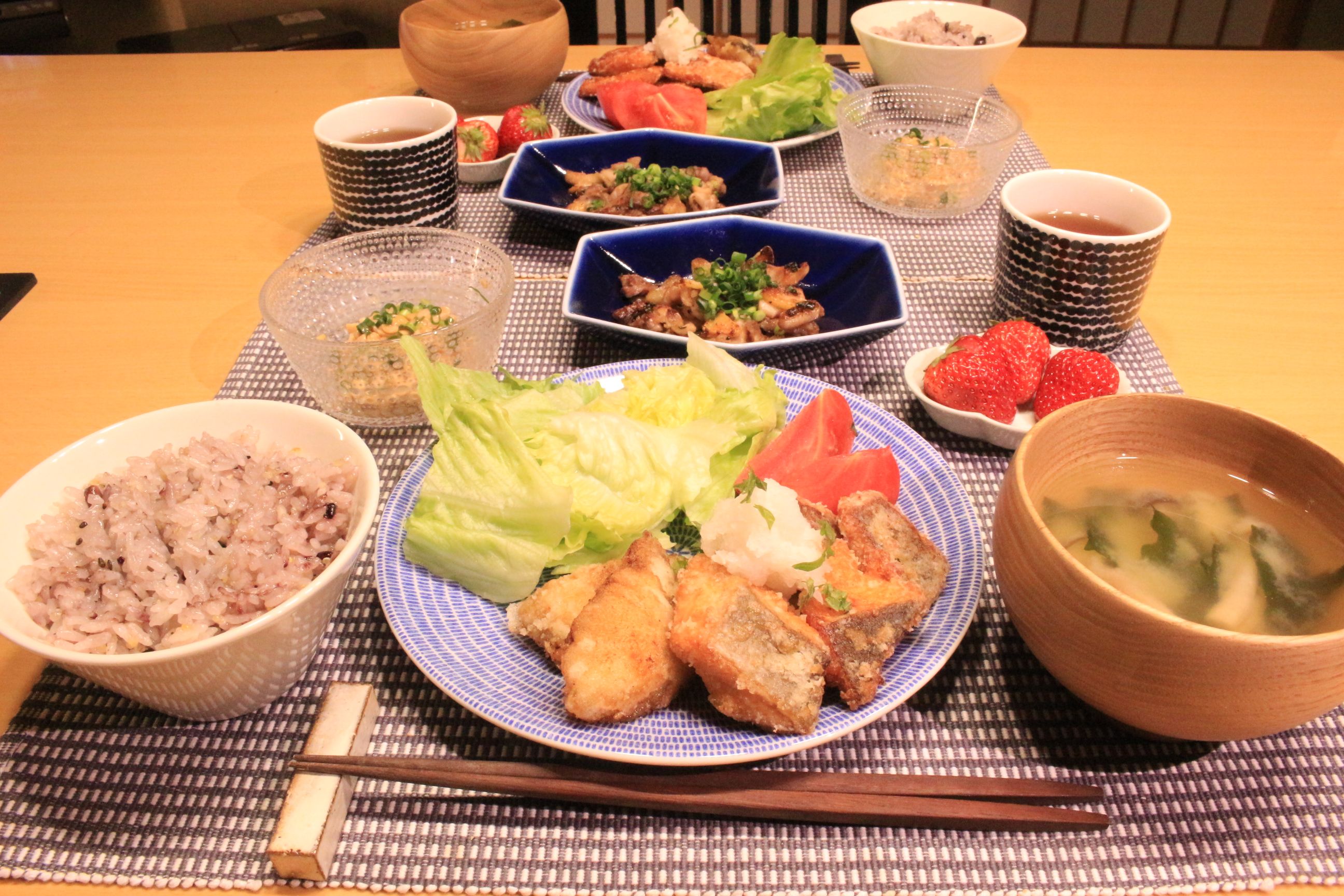 きょうの晩ごはん。こんばんはきょうは、鮭の竜田揚げ、親鶏のにんにく炒め、しめじとわかめの味噌汁納豆、雑穀ご飯、いちごでした。だんだん毎日の献立がきつくなってきました(笑)というのも私が持ってるレシピ本をフル活用&インスタを活用をもってしてもかなり厳しくなってきました・・・wなんとしても毎日被らないようになるべく肉が続かないように・・・努力はしているんですが・・・毎日献立を考えるとなると大変ですね!!(;´∀`)きょう買い物に行ったらめずらしいお肉を見つけたので買いました。親鶏みなさん知ってますか~?これすごく美味しいんですよー!僕も高校のときだったかな??父親に「これ旨いから作ってやる」と言われ、にんにく、ごま油、ネギをたっぷりつかった炒めものを作ってもらった記憶があるのですが最初食べたときはあまりの美味しさに感動しました。コリコリ歯ごたえがあって、ご飯がめちゃくちゃ進むんですよ~(´ω`)ごま油でもいいし、米油でもOKにんにくと一緒に炒めて香りを出したら食べやすい大きさに切った親鶏を入れてじっくり炒めます。火が通りにくいので、蓋をしたほうがいいかな?結構脂がでるので、油ひかなくてもいいかも。最後にちょっとごま油をかけても美味です。これが美味しくて美味しくて(´∀`)ぜひ食べてもらいたいです★そして。とっても綺麗な天然の鮭と鱈を見つけたので今日は竜田揚げにしました(´∀`)鱈だけいつもくどくなるので醤油はくれぐれも少なめに。。。いっつも濃くなるからなんでだろうーと思いつつ。染みこみやすいのかな~?大根おろしと一緒に食べれば大丈夫でした。上の緑は大葉です。アクセントになって美味しいと思います。実は、大葉のあの独特な香りがあまり好きではなく、飾りとしては大活躍なんですがあまり好んで食べないという。。天ぷらにすると美味しいんだけど生だとどうしてもあの強い香りが苦手・・・食べれないことはないんだけどね!!w 品数不足で不格好だったので(笑)納豆を買いました。夜に食べるといいらしいですね納豆は。ひきわり納豆派です(笑)少しだけ自己紹介しときます・・wあといちごが旬ですね!!きょう298円だったー(´ω`)イチゴのロールケーキもまた作らないとねー生クリームは買ってあるんですよ。。5月までだし、ついつい先延ばしになってしまってるような(笑)週末にでものんびり作ろうかな♪おやすみなさいさいごまで読んでいただきありがとうございました。