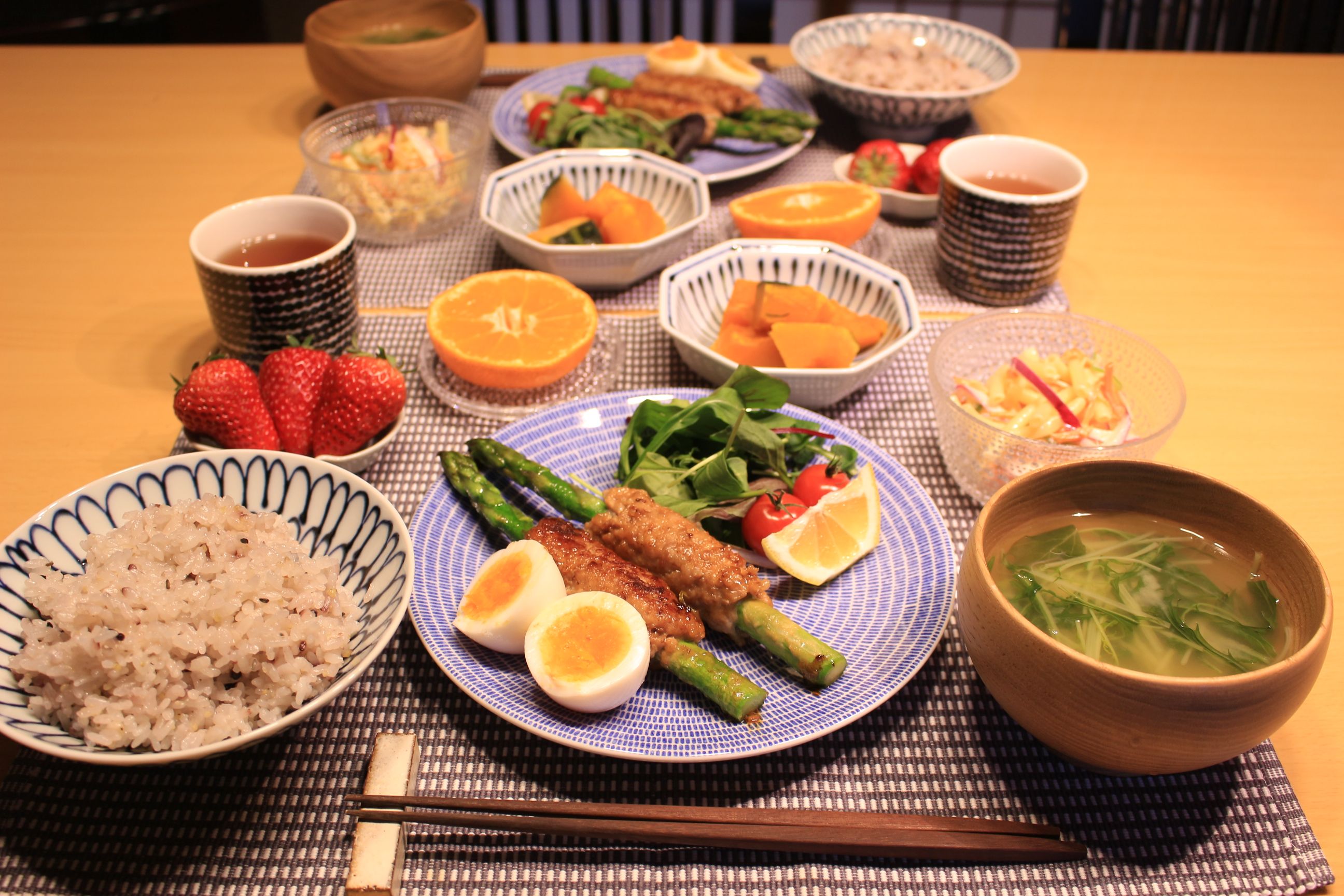 こんにちは昨日は、アスパラの豚つくね巻き、かぼちゃ煮、マカロニサラダ、水菜のお味噌汁、雑穀ごはん、いちご、三ケ日みかん。でした!アスパラ4本で300円もしたんですけど、みずみずしくて食べごたえがあってすごく美味しかった!!小麦粉をまぶしておくとひき肉がアスパラからはなれにくくなるそうでひき肉にマヨネーズを入れることでつなぎになるそうでさっそく実践しつつ、フライパンで焼きましたがはなれるわ、割れてくるわで大苦戦でした(笑)その甲斐あって美味しかったけどね(´∀`)いちごも真っ赤でツヤツヤ。甘くて美味しかった~(自分だけ3つ・・w)ちょっと前にも、書きましたけどインスタにハマってしまって、、早く作って写真を撮ってアップしたいという・・・のが頭にあって、途中の画像を撮らなくてすみません。。instagram→kazuki__1222よければ見てね(´∀`)ということで昨日の晩ごはんの記録でした!!今日はしっかり途中の様子も撮りますのでまた見に来てください~きょうのごはん何にしようかな~(;´∀`)悩みどころ(笑)いつもご訪問ありがとうございます_(._.)_