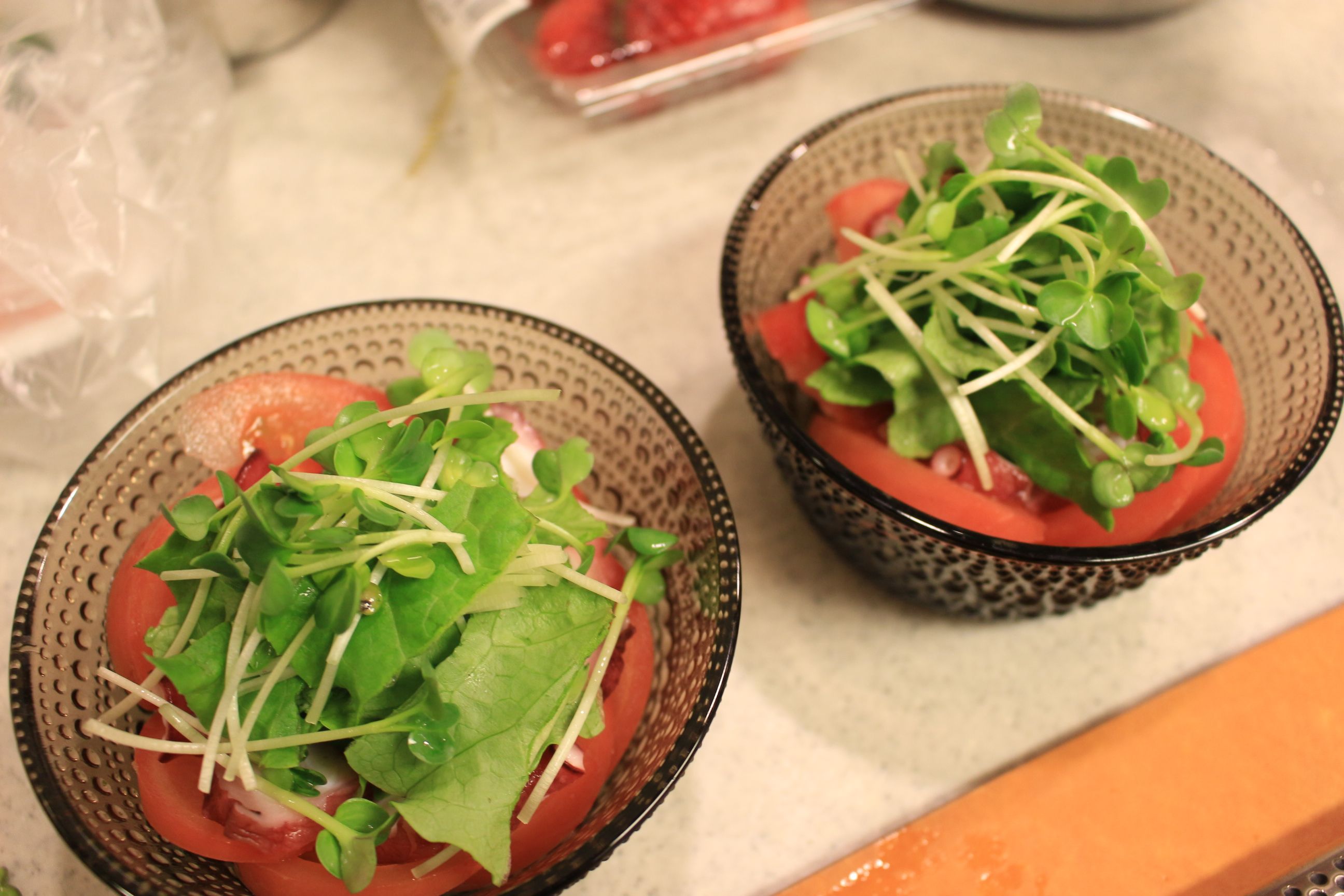 サニーレタス、かいわれ大根をのせて