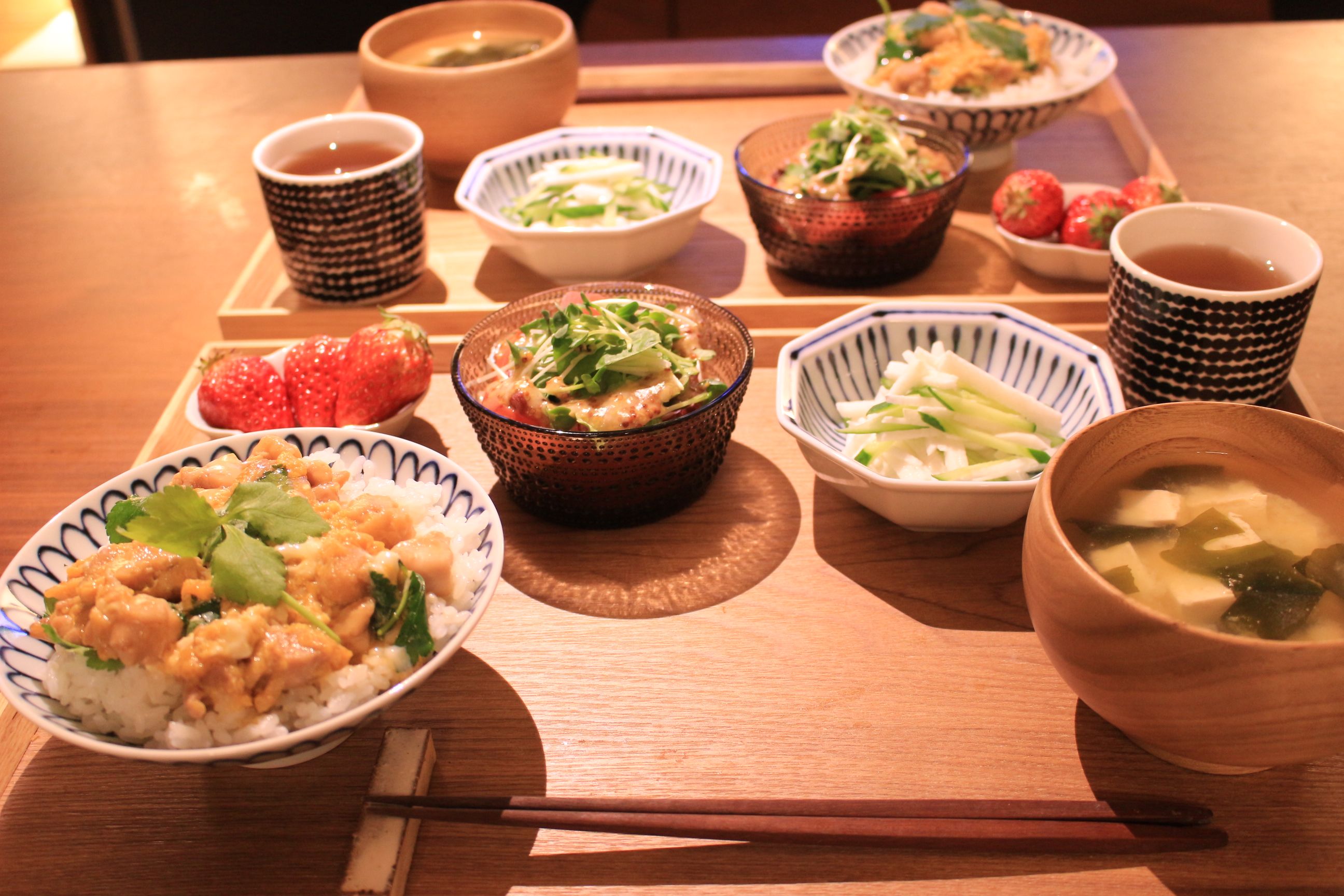 親子丼と味噌汁だけだと、