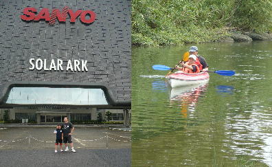 昨日は外出、今朝はPTA親子奉仕作業でちょっとぐったりしています。忘れる前に、とブログにアップします。既刊の古いBePalを見ていてふと思いついたことがきっかけでかず君にカヌーの話をしてみました。すると珍しくかず君が興味を示したのでそれじゃあ…と体験できるところを探して見ました。たいてい近場のところは4年生から、というところが多くちょっと離れたところでないと小学校低学年~はありませんでした。そんなときに県内で体験イベントとしてカヌーを扱っているという話を聞きさっそく検索したわけです。行き先は岐阜県海津市。朝、起きたときは天気がよく、出発時には雲が広がり、行く途中に雨に降られ…。これは中止かも…、と思いながら「木曽三川公園長良川サービスセンター」へ向かいました。ちなみにここのカヌー体験、4~10月の土・日・祝日に開催されます。イベントがあるときは中止になりますのでHPでチェックしてくださいね。開始時間少し前につきましたがやはり今日は中止。もともと行く途中で「天気がよくないから中止かもしれないからね」とかず君に話してありましたから残念そうではありましたが納得。このまま帰るのも悔しいのでだめだった時の裏スケジュール「太陽電池科学館ソーラーアーク」へ行きました。ここでは太陽の事や太陽光発電について知ることができる施設です。フィールドラボではいろんな光にまつわる体験ができ、また光っておもしろい!と思わせてくれます。帰ってきた後でHPを見て知ったのですが、今年の6/30に見学運用の見直しとして今は団体予約のみ見学可だとか…。でも私たちが行ったときは門のところで見学受付に記入し説明書と胸に見学許可シールを貼りラボを見学してきました。他に来ていた人たちは、どう見ても一般客。団体客ではありません。???どういう事だろう。夏休みだからOKだったのかな?このソーラーアーク見学中に天気も良くなり太陽も顔を出しましたので、駐車場を出る前に駄目元で長良川サービスセンターに電話してみました。すると「天気が回復したので先ほどから開始になりました。」と。この時点でかず君、サササッと水着に着替えスタンバイOK!長良川サービスセンターへと急いで戻りました。カヌー体験は1人1回500円。随時受付です。漕ぎ方など指導員の方が教えてくださり、子供は年齢、そして最初のパドルの指導の時、ちゃんと扱えているかどうかでシングルを進めたりダブルを進めたりしてくれます。かず君の場合、パッと見、シングルを進めてくれましたが私が辞退。その後の指導でまずはダブルで、慣れたらシングルで、ということになりました。だってパドルの裏表の説明を聞いてもわかってないかず君。指導員の方も不安にもなるよね~。カヌーに乗り込み最初のうちはパドルの扱いもたどたどしく上手く扱えませんでした。後ろに乗っている旦那のかけ声とパドルの持ち方をその都度直してもらい、漕ぐ回数を重ねると上手になりました。私は、というと写真撮影&指導員の方とカヌー体験ができる別の場所の情報収集や世間話をしておりました。45分ほどカヌー体験をしたかず君。指導員の方たちの声かけも的確でますますご機嫌~vv「次は一人で乗ってみたい!」と、早くも目標ができたようです。こういう原体験を積み上げていくことで少しでも何かにびっくり、発見したり自信をつけてくれたらなぁ…、なんて思いますがどうかな???