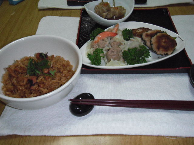 こんばんはシルバーウィークに入ってからばんごはんの更新が1日遅れになってしまいました 昨日のばんごはんは タコ飯 普通のシュウマイと海老シュウマイ 前日に余ったネギトロを使ってさんが焼き たこ飯 主人が好きじゃない事を今日始めて知りましたたこのお刺身は大好物なのにでも 息子の大好物なのでこれからも作ります