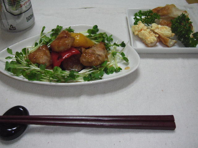 「鶏肉しかないよ」って言ったら「じゃあ マヨポン」と息子が言ったので今夜のばんごはんは鶏肉のマヨポン炒め 毎日毎日献立考えるのも大変ですよねでも、今はネットでレシピを検索出来て便利で助かりますね最近はお料理の本を買わなくなっちゃいました昔は作りもしないのにやたらと料理の本を買ってたっけ・・・