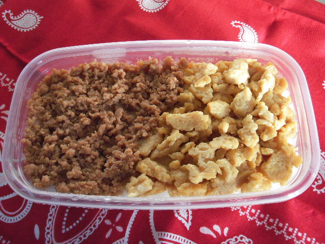 お弁当作りが面倒なときはこれ鳥そぼろ 生姜の絞り汁をたっぷり入れるのが息子の好みです 曲げわっぱ こども小判弁当箱 桜 漆塗り みよし屋