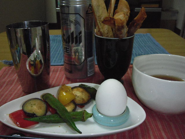 いつもの日曜日の今頃の時間はちょっぴり憂鬱明日もお休み 嬉しっ 今夜のばんごはんはスティック春巻きミニ春巻きの皮を半分に切って餃子の具を巻いたものとチーズを巻いたもの肉だんごのスープ焼野菜ゆで卵 主人の大好物 渋い~酒器春巻きスティックなど細長いものも♪冷酒 shop.B-SIDE