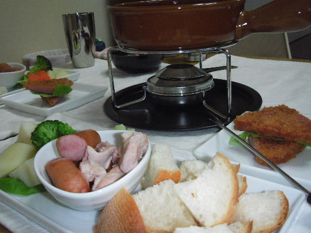 今夜のばんごはんはチーズフォンデュ 何日か前から息子が食べたがっていたのですがフォンデュ鍋を出すのが面倒で・・・やっと今日作りました 食べ過ぎて もう何もしたくない感じです 「マリ・クレール」スィートフォンデュセット(A) ラ・パレット
