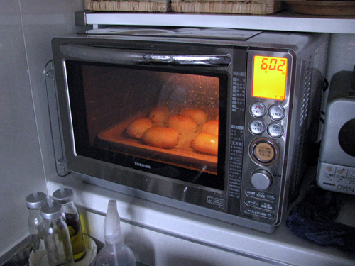 今週は月・水・金と帰宅が0時を廻っていたので、今日は6時半近くまで寝ていました。ブログをアップしようとしていたのですが、新聞の株や為替の記事を読んでいたら子どもたちが「お腹空いた」と言い出したので、この時間になってしまいました。いつもブログでは家事や子育てを私が中心にやっているように思われるかも知れませんが、妻がしっかりと家庭を守ってくれています。私は朝方で妻は夜型なので、私は普段は早めに撃沈しています・・・ すっかりホームベーカリーにはまってしまい、今日は「ソーセージパン」を作ってみました。生地の1次発酵まで機会にお任せその後、等分して寝かせてから伸ばしてソーセージを巻き巻き。40分ほど2次発酵させてオーブンで焼き上げました。 この焼きあがるまでが何とも言えずワクワクしますね~。そして出来上がったパンも廻りはサクサク、中はふんわりと美味しく出来大成功