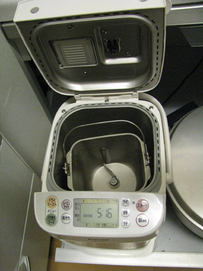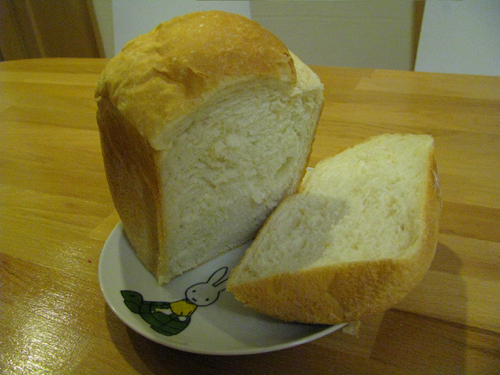 最近ホームベーカリーにはまってしまいました。今まで機械が有ったのは知っていたのですが、大変そうという勝手な思い込みで使わなかったのですが、一回使うと病み付きになりますね。今ではほぼ毎日、起床時間の5時にセットして焼きたてのパンを朝食に仕事へ行きます。香ばしいパンの匂いで起きるのも中々幸せなものです。外はサクサク!中はふんわり~。