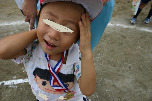 運動会無事に終わりました。朝から天気も良く、運動会日和でした。8時45分から開会式。20以上のプログラムから大玉ころがし、地区対抗リレー、体操先生と遊ぼう、跳び箱、綱引きに参加してクタクタです・・・今日の運動会の様子を写真でアップします。長男はいつもこんな調子大玉ころがしは目隠しをするので、本当に方向がわからずに早さだけで何とかのりきりました。地区対抗リレーは水戸地区は残念ながら予選落ち。途中で転倒してしまった人がいたので、37歳の私には前に走っている若いお父さんを抜くのは不可能でした・・・ロードレースは92人が参加していました。結果は長女が6位(女の子の1位)で長男が46位(年少さんの2位)でした。一生懸命頑張っていたので、本人も満足していました。 続きは明日アップします。