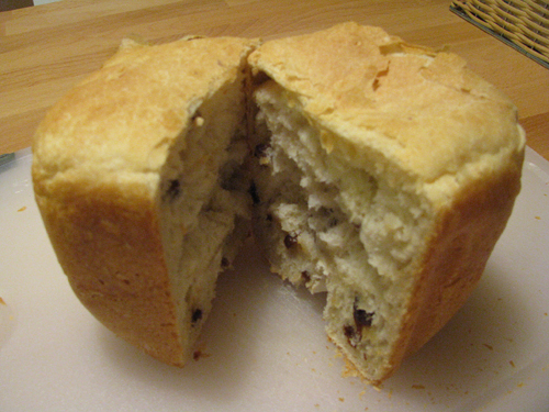 強力粉が無かったので「中力粉」でレーズンパンを焼いてみたのですが、焼き上がりが今ひとつ、膨らみが弱いのと周りが柔らかい・・・いつもは粉をブレンドして作っているので、強力粉買って来て再びチャレンジしますただ、味は美味しいですよ~