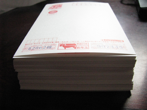今日は直行で良かった・・・起きたら6時半いつもなら遅刻です。。。昨日会社の人に頼んでおいた年賀状が届きました。この山で150枚。住所は筆で書いているので、11月中には大掃除と年賀状全て終わらせます今年はディズニーの年賀状も買ってみました。だれに届くかな~けっこう人気みたいですね