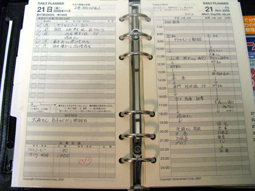 研修に参加後は毎日スケジュールにもとずいて行動しています。マンスリー、ウィークリー、デイリーと全てに予定を記入して「今日は何をするか、目標は?目的は?」と朝確認するようにしています。正直3日坊主の性格だったので、続くか心配でしたが、今は日課になりました。あと大きく変わったのが、毎日の出資の記入も有るので、最近はコンビニに立ち寄る事がなくなり、無駄使いが激減しました体重も半年前から3キロ減り、この調子で自己管理をしっかりとしていきたいと思います。平日だけではなく、休日もちゃんとつけています。すっごく楽しいですよ