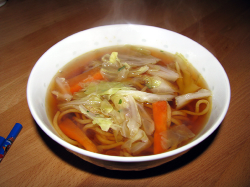 今日のお昼ご飯に「スープ焼きそば」を作ってみました最近栃木の名物で紹介されていたので気になっていましたが、材料もちょうど有ったので、おっかなビックリでしたがチャレンジ開始。作り方はいたって簡単、普通に焼きそばを作り、醤油ベースのスープに入れるだけコツは焼きそばの炒め具合は焦げが付くくらいが良いです。スープは麺に味が有るので少し薄くても良いかと思います。そして出来上がり~。スープはラーメン、食べると焼きそばの不思議な味。私はけっこう好きですが、家族はちょっと微妙な感じ?でも残さず全部なくなりましたが、好みが分かれるかな?といった感じです。 昨日買ってきたランタン、いい感じです明るすぎず、柔らかい明かりで寝室もロマンティックと言っても寝るのは長男と2人ですが・・・IKEAで値段は490円 良い買い物でした。