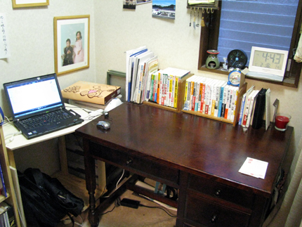 今日は午前中にホームセンターへ行って「板と角材」を購入。昨年からパソコンを机の上に置いて使っていたのですが、どうもスペースをとってしまうので、横のスペースを有効的に使えるように棚を作成しました。今までに比べて机がフルスペースで使えるのでこれは良いですコンセント類を踏まぬように、下には15センチほどのスペースも確保。かばんを収納してもスッキリしています長方形のままだと角が出っ張るので、机の角と隣の書棚の角がちょうど良い具合にカットしたので使い心地も最高です。材料費1,200円、工賃0円