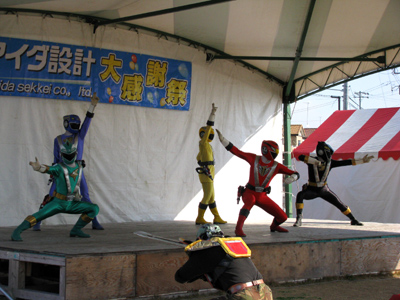 3連休の最終日。仕事したり部屋の片付けをしたり、考えてみると子供たちをどこへも連れて行っていない ので、先日広告が入っていた「アイダ設計」主催の住宅展示場イベントへ行く事にしました場所は家から約40分の常磐線羽鳥駅前。ゴーオンジャーショーに無料のやきそばやホットドック、ジュースに射的などサービス満載ここまでしなければいけない裏に景気の悪さを感じました。天気が良かったのでポカポカ陽気、でお客さんの出足も上々だったのではないでしょうか。長男と長女はかなり楽しんでいましたが、次男はちょっとおっかなびっくりで大人しかったのが以外でした。子供たち大喜びのショーでした射的引換券持ってわくわくの長男結果は残念だったけど、長女の筋の良さにはちょっとビックリしました。無料でこれだけ楽しめれば大満足です。