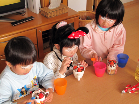 昨日は幼稚園のお友達家族が遊びに来ましたご主人とも仲良くさせて頂き、他県から引っ越してきた私にとっては大切なご家族ですまあ、お互い好きなんですけどねお子さん二人も大人しい子で、いつも安心して見ていられます。 最近子どもたちがパフェ好きで、昨日もみんなに作ってあげました。お昼を食べた後にもかかわらず、みんな(大人も)完食してくれましたアイスとチョコレートソースが甘いので、生クリームは無糖で泡立てました。 そして今日も簡単パフェ今日はフレークとアイスとポッキーにチョコソースをかけて簡単に出来ましたこれでも子どもたちは大喜びで食べてくれるので嬉しいですね。昨年は休みでも色々な予定が入って休日もゆっくり出来ない日が多かったのですが、今年はなるべく体と神経を休める日も積極的に作っていきたいと思います。 体調を崩している方が非常に多いので、皆さんもお気をつけて下さい(^-^)