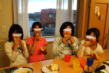 昨日の夜に子供たちが水戸の家に帰ってきました。震災の翌朝から船橋の実家や軽井沢へ避難していましたが、今週から学校も始まるので、余震の残る中ですが今まで通りの生活に戻して行かなければなりませんね。 子供たちが帰ってくる前にパンを焼きました色々な形になりましたが、ソーセージパンです(^-^) 長女も「美味し~い」と喜んで食べてくれました。 長男からは「お父さんパン屋さんやれば」と。。。(^-^;DVD鑑賞中 震災後、お客さんにパンを作って持って行ったらすごく喜んでくれたんですちょっと本格的に勉強してみようかと思います、せっかく食育指導士の資格も取ったので、活かして行きたいと思います