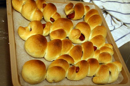 相変わらず続く余震・・・最近は慣れてきたとはいえ一昨日の揺れにはビックリしました。震度5はあると思ったら水戸は震度4でした。東北の方々の不安や大変さを想うと心が痛みます。これだけの大きな地殻変動が起きると数年に渡って震度5強以上があるらしいので、防災に対して常に意識を持っていないといけませんね。 さて、今まで我が家のHBは材料投入→スイッチオン→食パンの出来上がり、というローテーションでしたが、最近は1次発酵までHBで行い、その後は色々なパンを作る様にしています。今週作った一つ目はカレーパンパン粉をつけなかったので、どちらかというとピロシキに近い感じでしたが周りがサクサク中はモチモチで美味しかったです もうひとつはソーセージパン。今回はケチャップとマヨネーズを乗せて焼きましたこれも美味しくて大成功でした今度は巻く時にマスタードを塗りたいとおもいます 今週は食育指導士の認定証も届きました