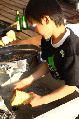 昨日は久しぶりに朝日がまぶしかったので、まずは庭でパシリ 今回は6年近いお付き合いをさせていただいている友人家族(奥さんは残念ながらお仕事)との久しぶりのBBQ。子供たちも朝から待ちきれない様子でした。10時半に家を出て車で約40分、道の駅かつらに到着~。たくさんの人がいましたが、場所も確保できて準備OK 前日までの大雨で那珂川の水量も多かったので、水の事故だけは神経を使いました バーナーを持って行ったので、すぐに着火焼き肉・焼き鳥・焼きそば・ししゃも・イカ・ソーセージなどなどを焼き焼き焼き鳥のたれは契約者様が焼き鳥店を経営されているのですが、その方から頂いたタレで焼きました~ 子供たちも大満足 浅瀬の安全な所だけで水遊びちょっとのはずが、全てびしょびしょ・・・着替え持ってきてないぞ~。 でも、夏の様な暑さだったので自由に遊ばせました最初は「少し考えて入ってよ~」と思いましたが、妻とご主人と話していて「逆に小学生がそこまで考えて行動されたら子供らしくないし、大人があれダメこれダメと言ったら学習にならないね」という事で、濡れて着心地悪くなるのもこれも経験 たんまり遊んだ後はさすがに疲れたのか次男はトランクで一休み☆疲れたけど、今日もたのしい一日でした
