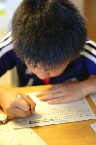 今年の3月末に神奈川へ引越しをしてしまった親友から手紙が来て、一生懸命返事を書いている長男。今週末は水戸に残っていたお父さんの引越しのため、家族でこちらに来るのを今から楽しみにしています(^^) 今日は長男が手紙を書いていたので、次男と二人で3キロのジョギングに行ってきましたが、私の方は最近必ず足のどこかを故障していて、満身創痍状態です(^^; 次男は昨年、幼稚園のロードレースで優勝したので、今年の小学校の持久走も優勝する!と意気込んでおります!