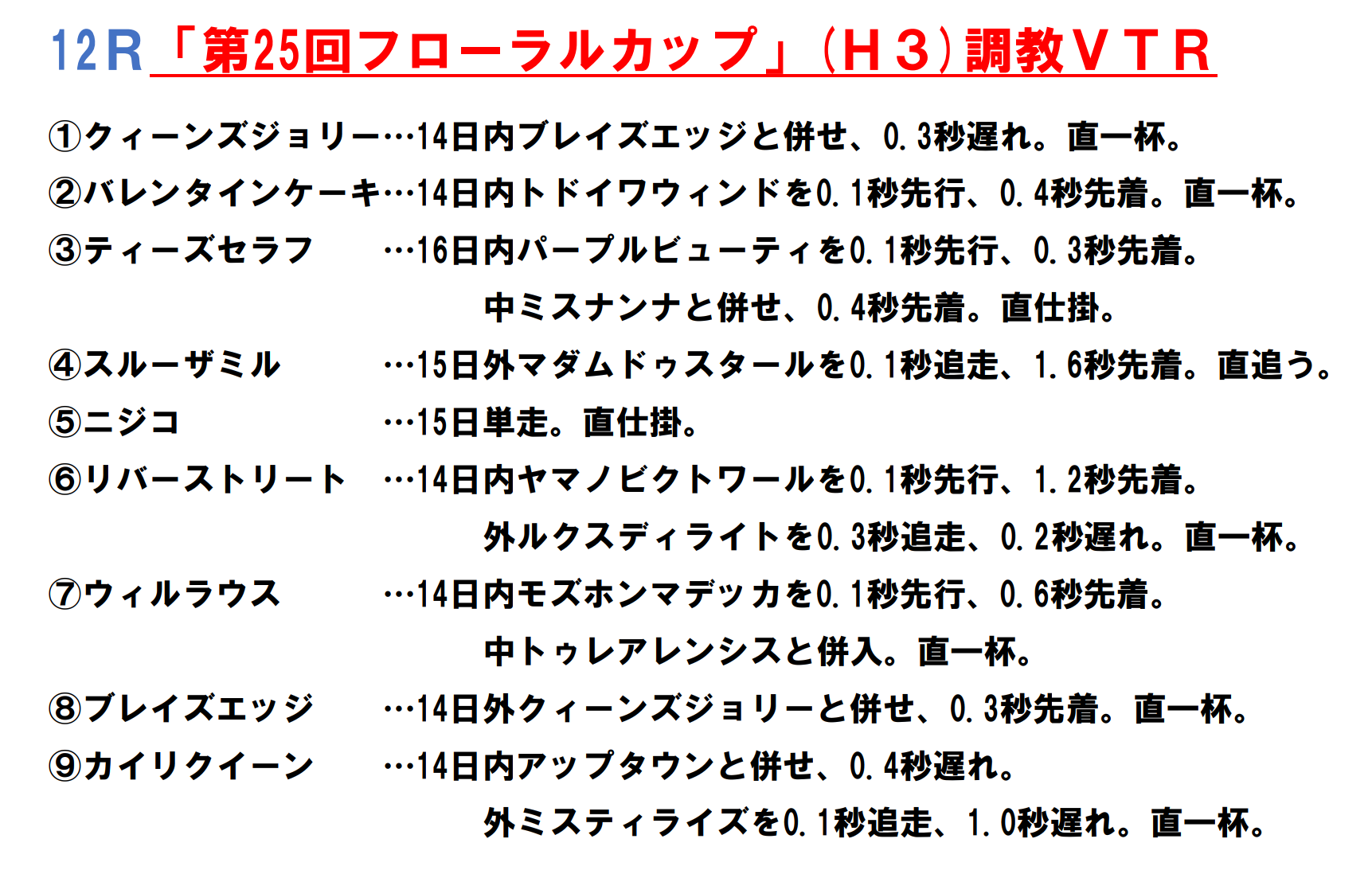 ​ 「ふるやっちチャンネル」 「フローラルカップ」 ​などを中心としたレース展望をアップしています。​ こちら ​をご覧下さい。