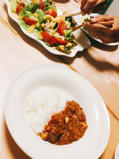 カレーとサラダというシンプルな献立でも家族は喜びます