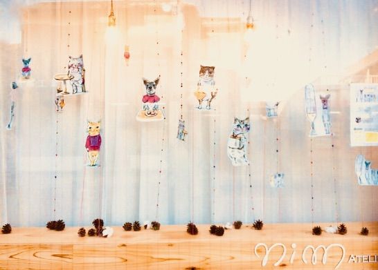 アーティストさん達が猫たちと看板犬のホッピーをモチーフに
