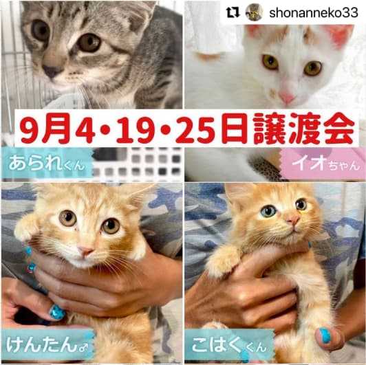 詳細はブログで ​ 湘南ねこ33 9月の譲渡会日程・・・