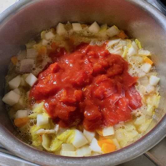 冷蔵庫に余りがちな白菜を使ったミネストローネ。