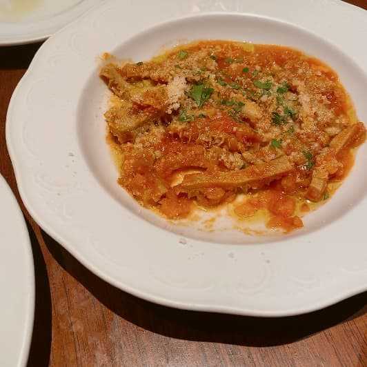 その時はきのこ詰めの鶏肉をトマトソースで煮絡めたように思います。