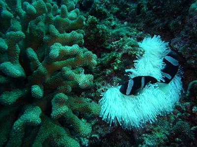 母島での写真です♪↑小笠原のニモ(カクレクマノミ)は真っ黒デス↑イソギンチャクがやわらか絨毯みたい↑こちらはファミリーかな? 小さいのは少しオレンジ色がかってる↑私の大好きなコガネヤッコアイシャドウがラブリーとってもシャイですぐに隠れちゃうんだ↑マダラタルミの幼魚が群れていた!? なんかおしゃれ↑遊びすぎて水面に顔を出したらもう夕方になっちゃった空がきれい↑ちなみにペンションのごはん おいしくて困った(笑)↑母島水族館で飼育しているかめさん。大きくなったら海に帰るんだって↑最終日の月 ちょっと曇り夜空だぁにジュース買ってぇ~と自販機を見たら。。↑アノールかな? つめた~いの字がトカゲのシルエット海は楽しくて、他のダイバーとも仲良くなって島の人や同じペンションに泊まる人とも仲良くなって夜はお散歩してまた港で魚を探したり星を見たり、犬の一人お散歩に遭遇したり(笑)島を歩くと昼間会った人とまた会っちゃう旅だなぁ~人と話すとその土地のことをもっと深く知ることができるよねそういうのも好き 旅はいいよね見に来てくれてありがとう明日は陸の写真も♪keico♪