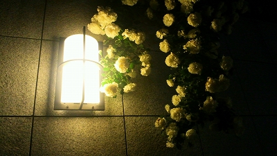 垂れ下がるバラと外灯。。ロマンティックだなぁこんな明かりの下で待ち合わせたら。。。ちょっと暗いか(笑)keico♪