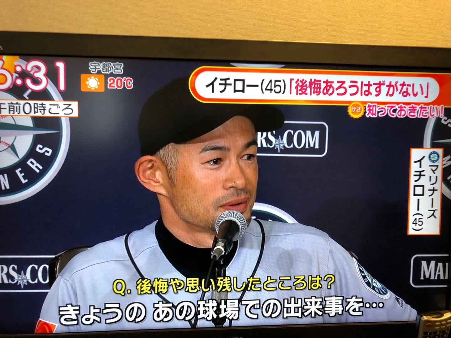 イチロー選手が現役引退を表明しました。 深夜の記者会見は既に寝ていたので見ていませんが、朝からテレビのニュース等で何回も見ました。 私が名古屋に居た頃、愛工大名電の鈴木投手として、甲子園に出場しています。 そしてオリックスにドラフト4位で入団して、プロ野球選手として歩み始めます。 甲子園には2回出場していますが、いずれも初戦敗退でした。 プロに入団しても、2年間はほぼ二軍生活でした。 3年目に新監督に就任した仰木監督に才能を見出され、レギュラーで起用されます。 この時に日本では初めて名字を除いた「イチロー」として登録されます。 日本で9年間活躍した後に、ポスティングシステムを利用して、シアトル・マリナーズへ移籍します。 今にして思うと、日本人野手として初めてのメジャーリーガーということです。 メジャーリーグでも19年間、様々な記録を打ち立てます。 マリナーズからトレードで電撃的にニューヨーク・ヤンキースへ移籍した時は本当に驚きました。 背番号31が印象的でした。 その後、マイアミ・マーリンズを経て昨年、古巣であるマリナーズに電撃復帰します。 この時のことは、このブログ「イチローが古巣へ復帰」でも書きました。 そして、昨日のメジャーリーグ開幕第2戦、オークランド・アスレチックス戦を最後に、現役を引退しました。 日米通算4,367安打は世界記録、2度のWBC世界一への活躍も忘れられません。 不世出の名選手として、語り継がれるでしょう。 本当にお疲れ様でした、と申し上げたいです。