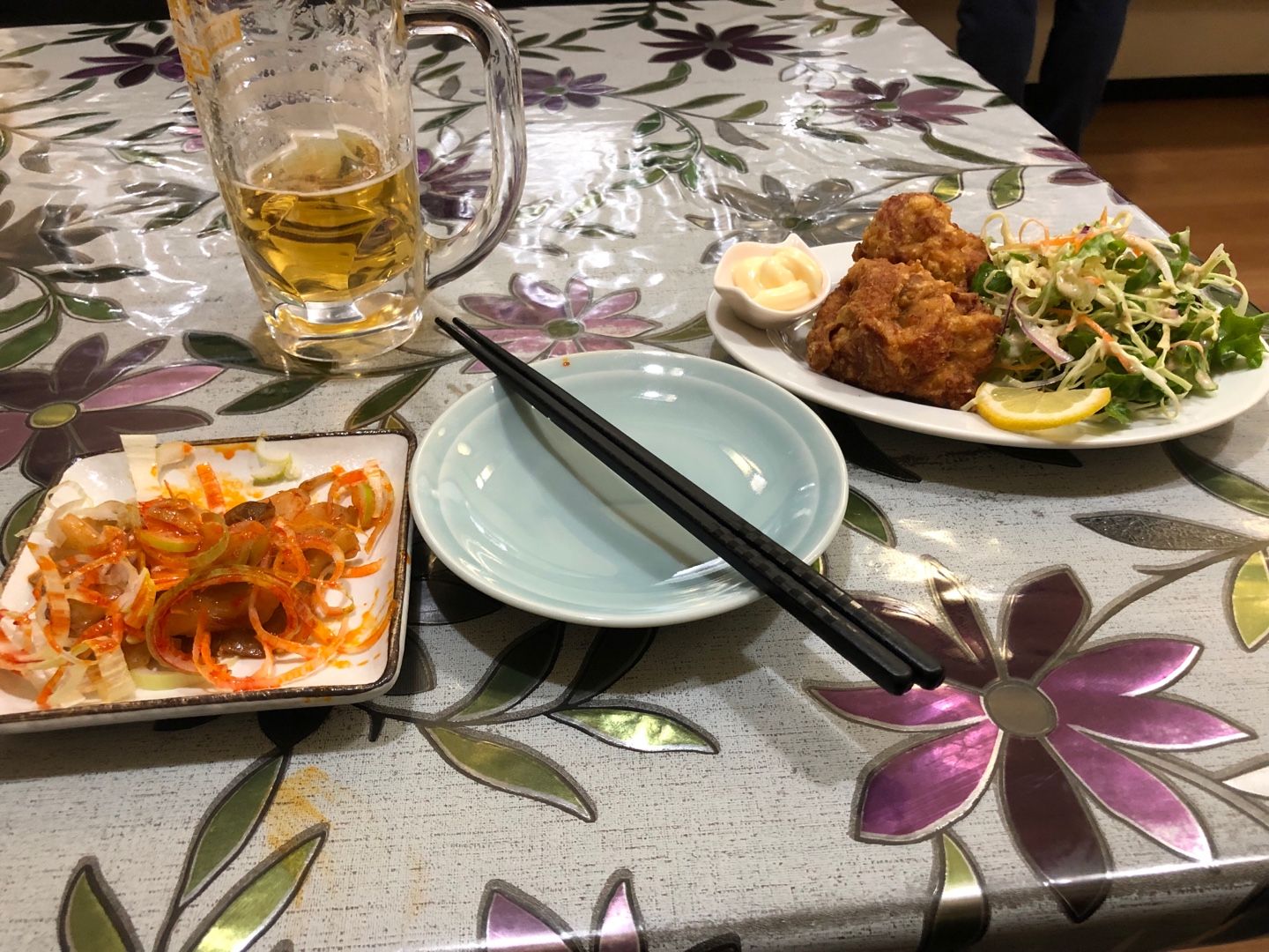 新たな店を探すというミッションは続きます。 気になる店が色々あるので、楽しいです。 今回は中華料理店にフラッと入ってみます。 何回も前を通っていたので、雰囲気はわかっています。 中国人オーナーにスタッフも中国人のようです。 晩酌セットという、飲み物に好きなつまみを3品で980円というセットがあるので注文します。 生ビールとザーサイ、唐揚げを注文しました。 もう一品は、日替わりのようです。 中国人オーナーらしく、とても美味しいです。 なかなか満足です。 今度はちゃんと定食や、一品料理を食べに来ようと思います。 980円払って店を出て、すぐ近くにある博多串焼きの店に入りました。 入って初めてわかったのですが、先ほどの中華料理店と姉妹店のようです。 メニューにさっきの中華料理店のメニューもあります。 スタッフも中国人のようで、先に来ているお客さんも中国人です。 中国人はたくましいです。 瓶ビールと焼き物を4品頼みました。 焼き物は2本からということで、全部で8本頼みました。 これもなかなか美味いです。 中国人でも、日本在住が長いのでしょう。 ビール1本とハイボールを飲んで、店を後にします。 2,000円強ですので、コスパもいいですね。 そして、真っ直ぐ帰るつもりでしたが、帰路の途中にどうしても気になる店に入ってしまいました。 昔ながらの中華料理店です。 入ってみると、正に昭和の中華屋の雰囲気です。 だいぶ食べていたので、ラーメンだけを注文しました。 老夫婦が運営しているお店です。 ラーメンは昔ながらの中華そばです。 絶対に美味しいと思いましたが、その通りでした。 こういうお店はチャーハンも美味いと思います。 今度はチャーハンも食べてみたいと思います。 これでなんと380円でした。 しめて3,500円ほど、約2時間のはしご酒でした。 新たな店の開拓は、まだまだ続きます。