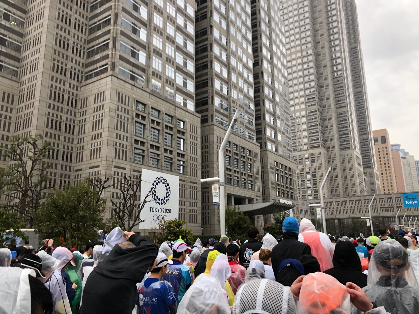 東京マラソンの日がやってきました。 珍しく昨夜は寝つきが悪かったです。 何だかんだ言っても、気分が高揚しているのでしょう。 移動の電車の中にも、ランナーがあちこちにいます。 38,000人も参加する大会ですので、当然と言えば当然です。 東京都庁に着いた頃から、雨が降り始めました。 本格的な雨になりました。 予定外です。 都市型超大型マラソンの混雑、慌ただしさと、雨の中で長く待つことで、スタート前に既に足に違和感を感じていました。 これが最後まで尾を引きました。 スタートしてから混雑と雨で走りにくく、なかなかペースを刻めません。 また、先週の疲れがまだ抜けていないのか、厳しい走りになります。 12km過ぎにトップランナーとすれ違いました。 大迫、佐藤、一色、下田選手の姿が確認出来ました。 こちらは全く調子が出ません。 相変わらずの雨の中、中間点は1時間57分です。 今日は、まだ半分あるのか、という感じです。 こういう時は苦しい走りになります。 30kmの銀座あたりから少しペースを上げてみました。 しかしながら長く続かず、品川の折り返しを過ぎて残り6kmで右膝に異変が出ました。 悩んだ末にタイツを履かないで走ったことで、下半身が冷えてしまったようです。 何度も止まって右足を伸ばし、歩くようなスピードでゴールを目指します。 やはり、雨の中でのフルマラソンは、思った以上に身体にダメージを与えます。 おまけに2週連続のフルマラソンということで、最後に撃沈しました。 スタートで7分ほどロスがあったので、グロスはともかく、ネットタイムでのサブ4は絶対に続けたい記録です。 手元のゴールタイムは3時間59分26秒と、本当にギリギリでした。 とにかく寒い、ということと、最後に止まってしまったことしかほとんど記憶にないほどの厳しいレースでした。 良い教訓になりました。 シーズン6ヶ月で6本のフルマラソンを走り終えました。 15回目のフルマラソンも、どうにかサブ4はつながりました。 少し身体を休めたいと思います。