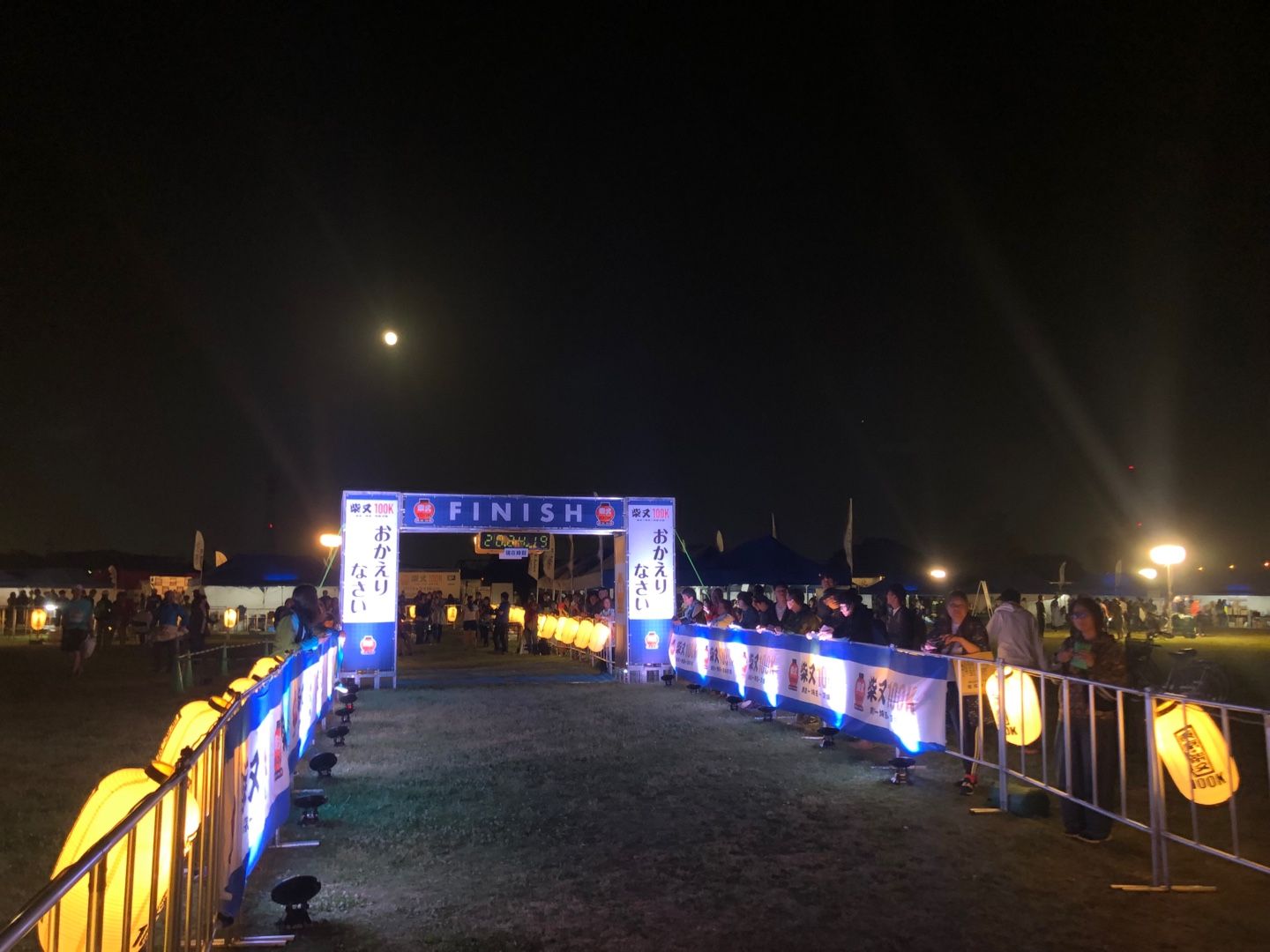 柴又100kmは中間点を過ぎました。 そして、残りフルマラソンとなる58kmまで来ました。 フルマラソンなら何度も走っているので頑張れる、と言い聞かせて、走り続けます。 そして去年走った60kmまで来ました。 ここから先は未体験ゾーンです。 まだまだ身体は元気です。 去年ヘロヘロだった60kmを過ぎて、残りは40kmです。 しかし、この残り40kmからが、なかなか距離が減らない感じにとらわれます。 少しずつペースも落ちてきて、徐々に疲れが出てきます。 残り33kmほどになったところで、向かいから同じランニングクラブメンバーのAさんが走ってきました。 彼は27km付近でも応援ランですれ違っていました。 70km過ぎに私設エイドを出しているということで、そこまで並走してくれました。 このような応援は、本当に心強いです。 エイドでコーラをいただき、握手して別れました。 ありがとうございました。 残り30kmです。 一気に行ける距離ではありません。 ここから80kmあたりまでが、やはり苦しいところです。 段々と陽も落ちてきました。 スマホの充電も切れそうなので、妻にメッセージを送って、電源を切ります。 時計も画面が見えなくなってきました。 ここからが頑張りどころです。 あとハーフ、あと10マイル、と言い聞かせながら、三郷に行けばあと10km、ここでリフレッシュしようと決めます。 陽も落ちて気温が下がることが予想されますので、三郷でノースリーブから長袖に着替え、タイツも履きます。 ラスト10km、もうあとは勢いで行けるでしょう。 と思ったのですが、すっかり夜になり、体力も消耗してしまいました。 あと10kmがなかなか進めません。 これまでの道のりを思い出しながら、気力で進みます。 残り5km、ウルトラマラソンの師匠であるOさんの私設エイドがありました。 ゴールまで余裕で行けるよ、頑張れ、と激励していただき、コーラを飲んで走り出します。 この辛い局面で、本当にありがたいです。 歩くようなペースでも、前に進みます。 新葛飾橋を超えて残り3km、ようやく東京に戻ってきました。 最後のエイドは残り2.3kmの地点です。 ボランティアさんに感謝して、ゴールを目指します。 もう真っ暗な河川敷なのに、灯りをつけて応援してくれる人がたくさんいます。 力をもらって、ゴールを目指します。 残り1km、感動のゴールまであと少し、と言い聞かせて、最後の力を振り絞ります。 灯りが見えました。 物凄い歓声です。 闇の中に電気に照らされたゴールゲートが見えました。 そのまま、「やったー」と雄叫びをあげ、両手を挙げてゴールしました。 完走メダルをかけていただき、先にゴールしていたHさんとも合流しました。 お互いの健闘を称えて握手しました。 12時間44分の長い1日は終わりました。 初めての100kmを完走したら、どんな自分に会えるのかと思っていましたが、あまり良く分からないというのが正直なところです。 これから少しずつ、実感がわいてくるでしょう。 自分1人の力では、もちろん完走出来ませんでした。 支えていただいた多くの方に心から感謝を申し上げます。 本当にありがとうございました! しばらくは休養したいと思います。 飲み会も解禁しますので、また皆さん是非誘ってください。