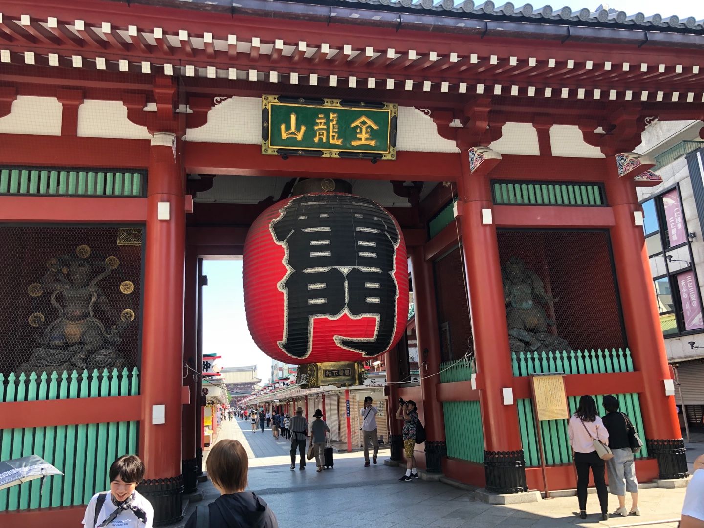 雷門の前で写真を撮る外国人観光客がたくさんいます。