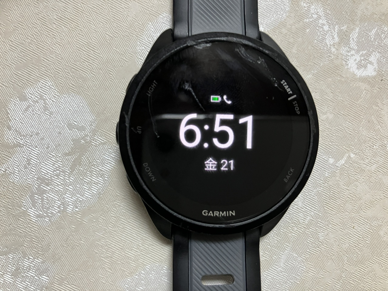 普段はガーミンのForeAthlete55を使っていますが、レースの時だけはForerunner165という、少し機能が充実しているモデルを使っています。