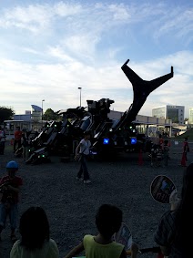 今日は、家族でちょっとお出かけしました。そこで、こんなものを見かけました。KABUTOM カブトムシ型巨大ロボットです!説明によると、全長11m、幅9.5m、全高3.6m、重量約17t(推定)で、実際に5~7名が搭乗可能。歩行や旋回、つのやハネの上下動が可能です。高橋均(たかはし ひとし)さんという方が、仕事のかたわら、趣味で11年かけて製作したそうです(1人で)。驚きです!!写真ではわかりにくいですが、実物を見ると、結構な迫力です。子どもたちが群がっていました。