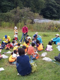 昆虫採集(観察)が終わった後の余談になりますが、実は、息子がイベント参加に備え、家から図鑑を持っていっていました。昆虫図鑑は、見すぎてバラバラになってしまっているので持ってこなかったのですが、鳥図鑑と両生類・爬虫類図鑑をバックに入れて持っていっていました。今回、引率を勤めていただいた方の代表の方が、昆虫もすごく詳しかったのですが、両生類や爬虫類が特に専門であるらしく、私の息子の持っている図鑑を見て、興味を持ってくれたらしく、いろいろな話をして下さいました。隣で聞いていると、普通に会話をしていました。趣味(?)の話になると、年齢差など関係ないのでしょうか、息子7歳に対して、その方(先生)は恐らく60歳位だと思われます。見ていてちょっと面白かったですが、先生は、息子に対して真剣にいろいろ教えて下さいました。先生は、普段は千葉県のある施設にいらっしゃるらしいのですが、イベントごとに各地に呼ばれ、たまたまお会いできたのです。最後に、もし千葉県まで来たら、もっといろんな話を聞かせてあげる、と名刺と携帯電話の番号までお渡し下さいました。おじさんが子供に名刺を渡している姿は、ちょっと滑稽でしたが、機会があれば連れて行ってあげようと思いました。